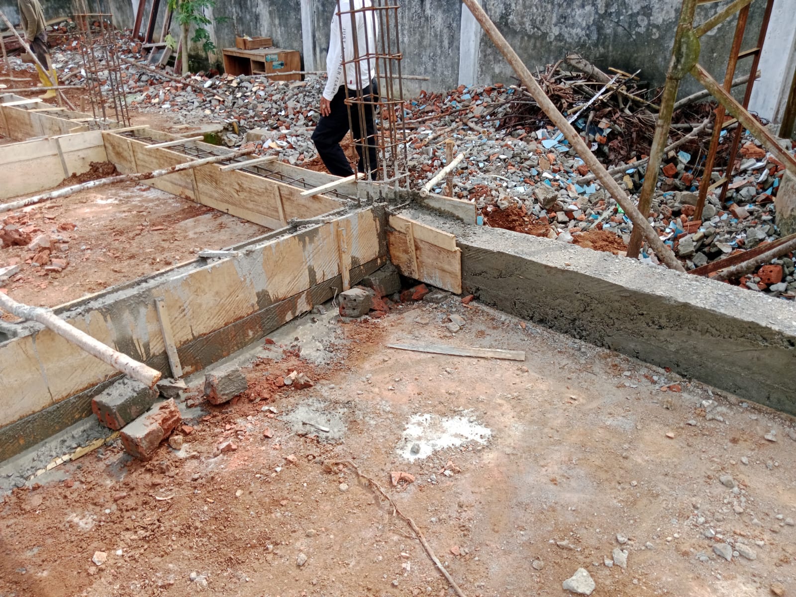 Lebih mengkhawatirkan lagi, di beberapa titik di bawah pondasi, didapati kondisi yang ‘kopong’ atau tidak terisi sempurna. Bahkan, terdapat pondasi baru yang terkesan menumpang di atas struktur bangunan lama, sebuah praktik yang berpotensi melemahkan kekuatan dan stabilitas gedung dua lantai tersebut.