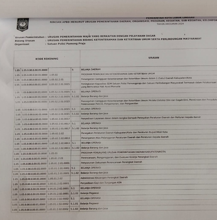 Lubuklinggau _ Pada Tahun 2024, Kota Lubuklinggau melalui Satuan Polisi Pamong Praja (Satpol PP) menggelontorkan anggaran jumbo lebih dari Rp 3,1 miliar untuk program Pencegahan Gangguan Ketentraman dan Ketertiban Umum. Program ini diklaim meliputi deteksi dini, cegah dini, pembinaan, penyuluhan, patroli, hingga pengamanan dan pengawalan.