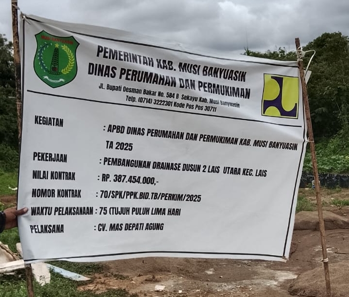 MUBA,- Pengerjaan proyek pembuatan drainase di Dusun 2, Lais utara, kecamatan lais Kabupaten Musi Banyuasin, Sumatera Selatan kembali menjadi sorotan.