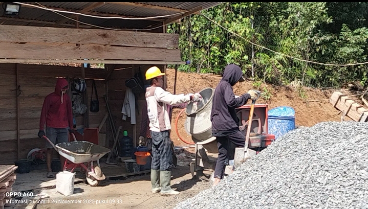 Cor ‘Asal-Asalan’: Proses pengecoran menggunakan mesin molen manual dengan material (pasir dan split) yang dimasukkan langsung menggunakan sekop dari tumpukan. Ini jelas melanggar standar konstruksi yang mewajibkan takaran terukur (job mix formula) untuk memastikan mutu beton yang disyaratkan (K175 hingga K250) tercapai.