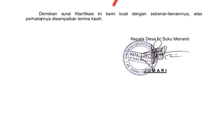 Sejumlah pihak kini mendesak agar Pemerintah Desa IV Suku Menanti menyampaikan laporan pelengkap berupa: