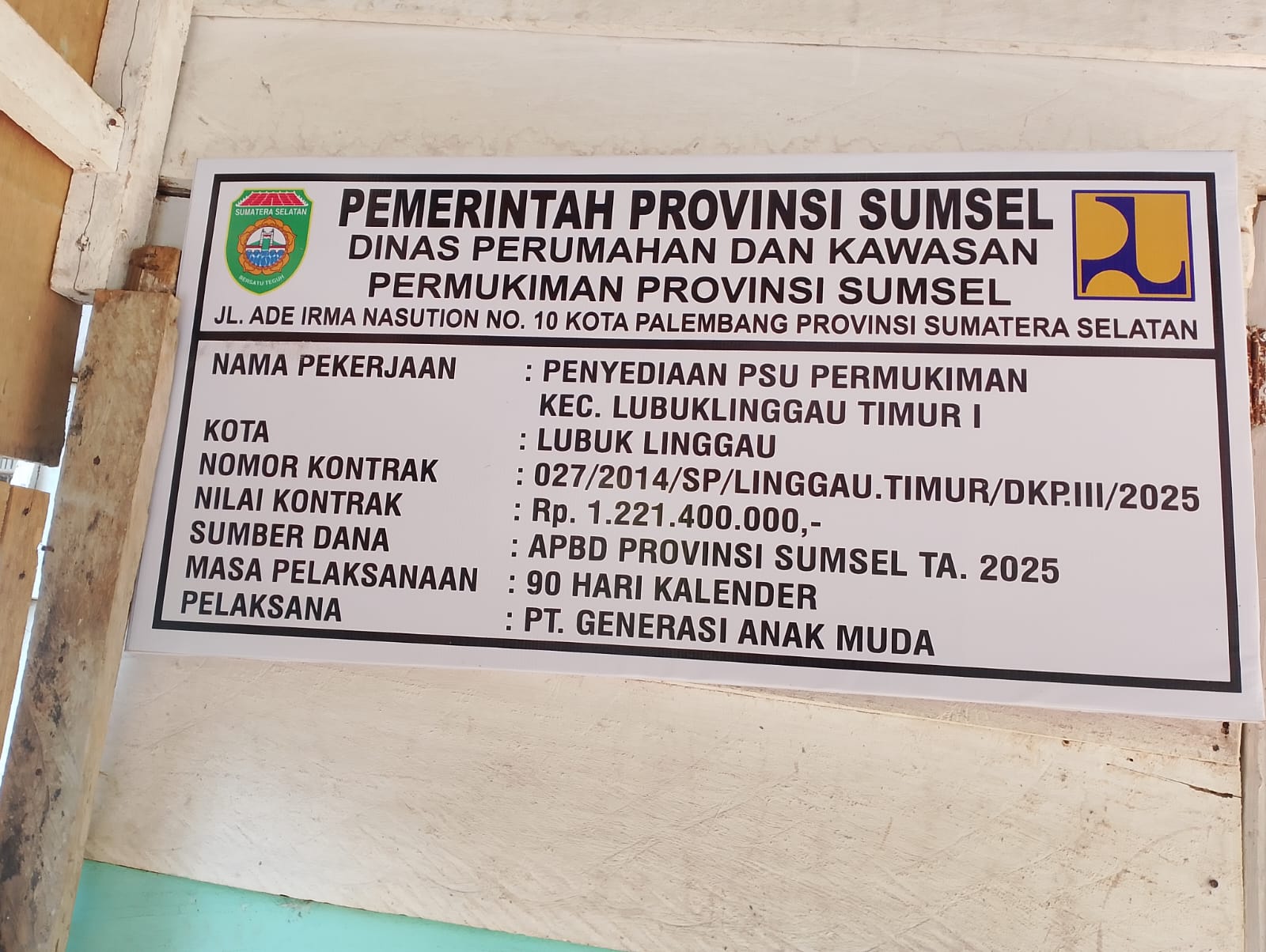 Proyek yang bersumber dari APBD Provinsi Sumsel TA 2025 tersebut memiliki nilai kontrak 027/2014/SP/Linggau.Timur/DKP.111/2025 dengan masa pelaksanaan sembilan hari kerja. CV Generasi Anak Muda ditunjuk sebagai pelaksana kegiatan.